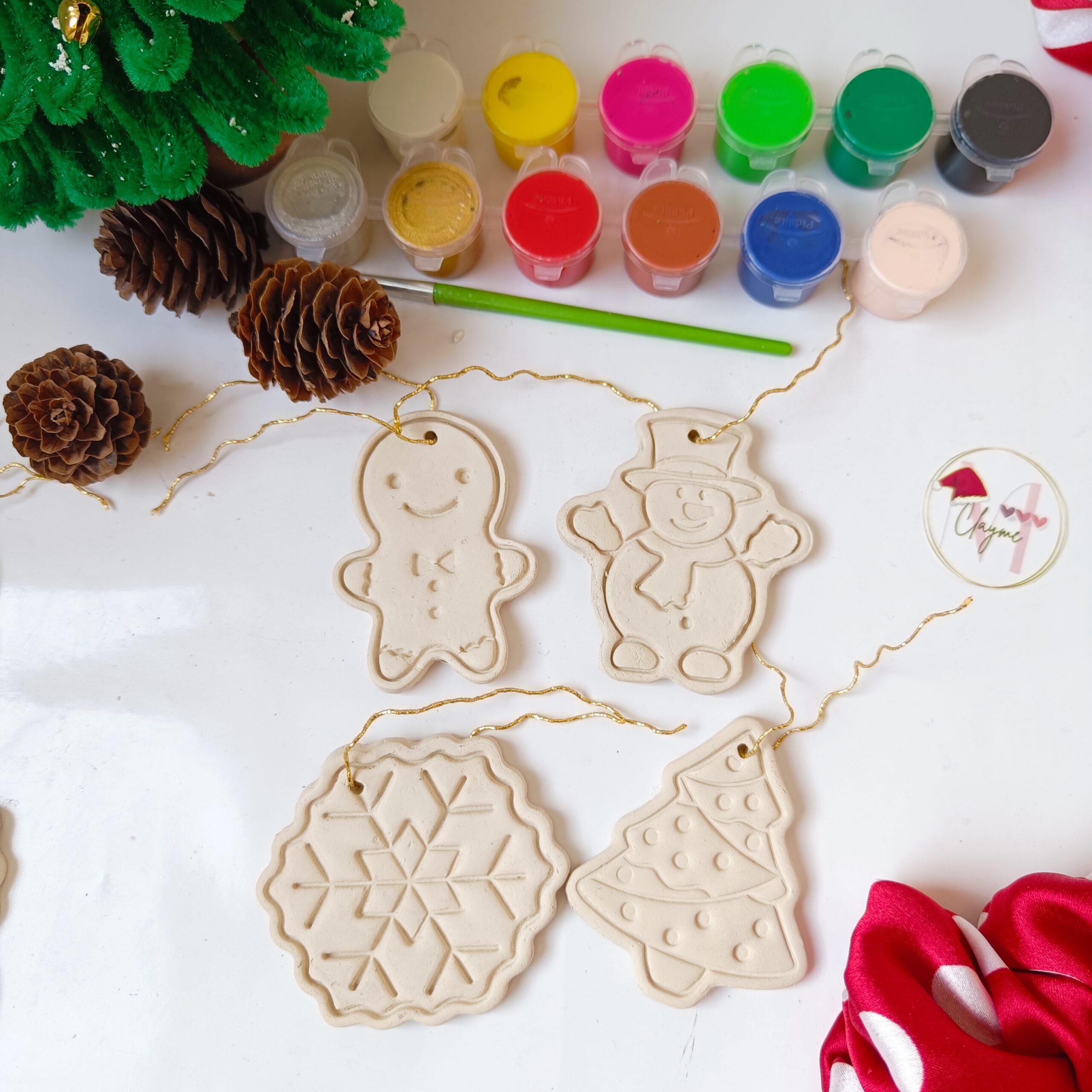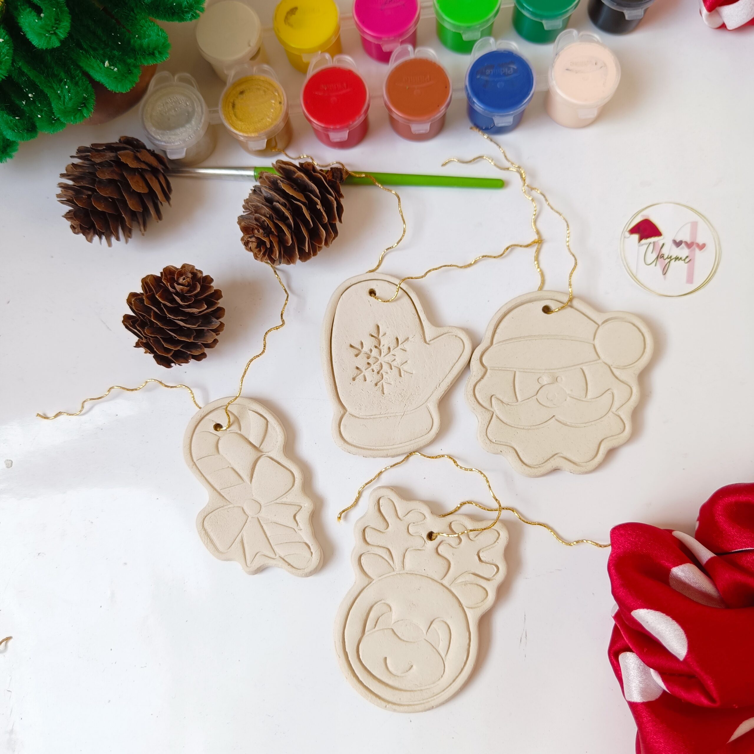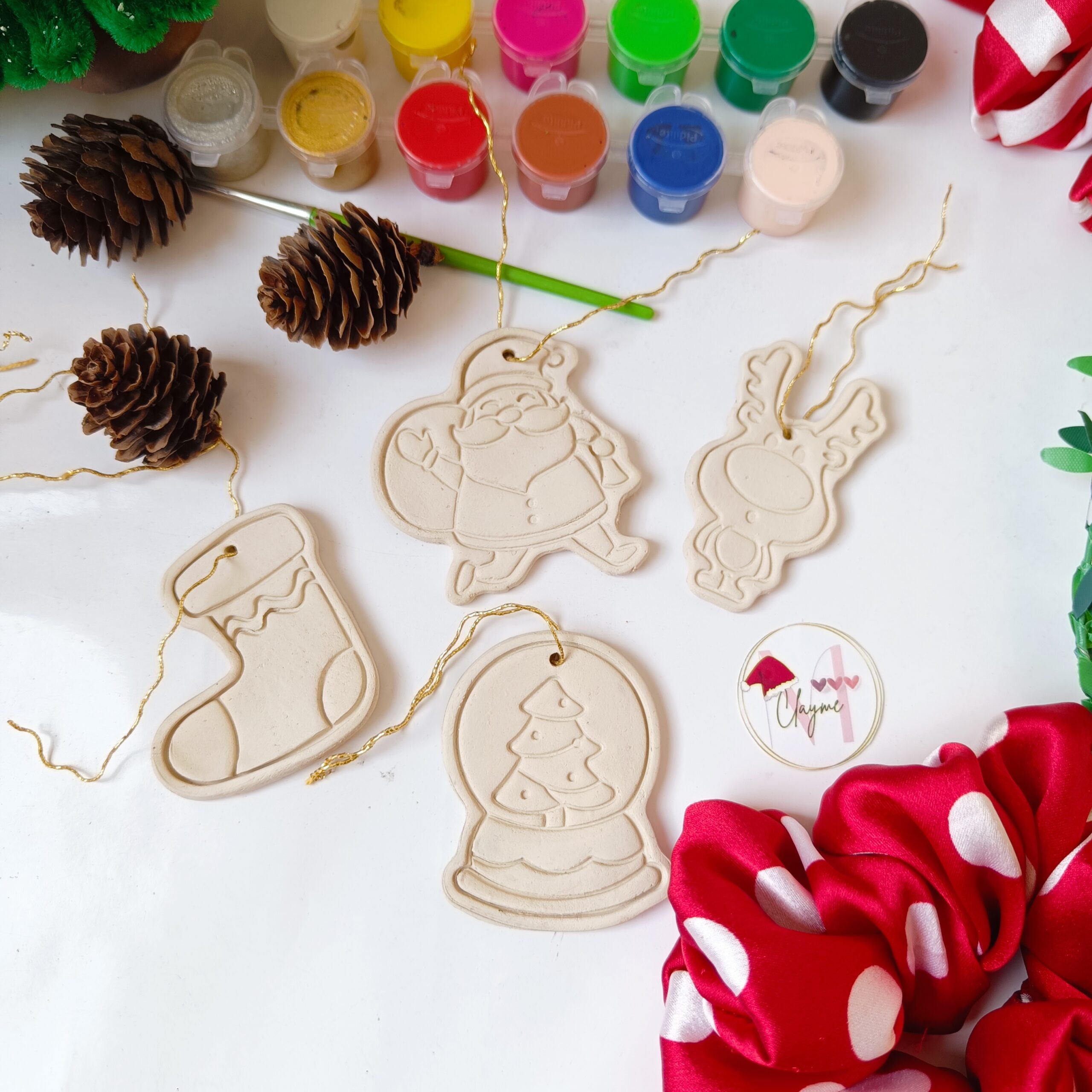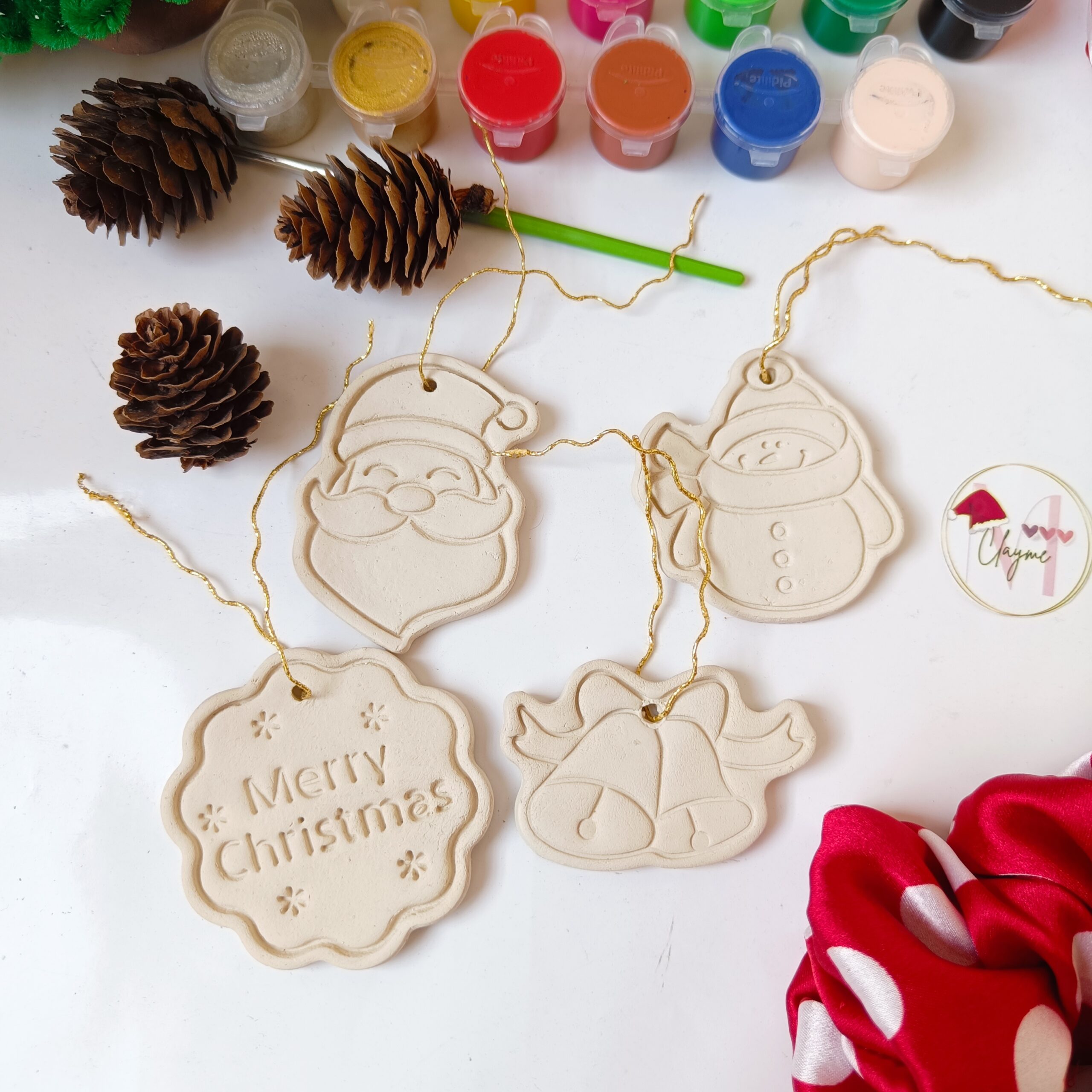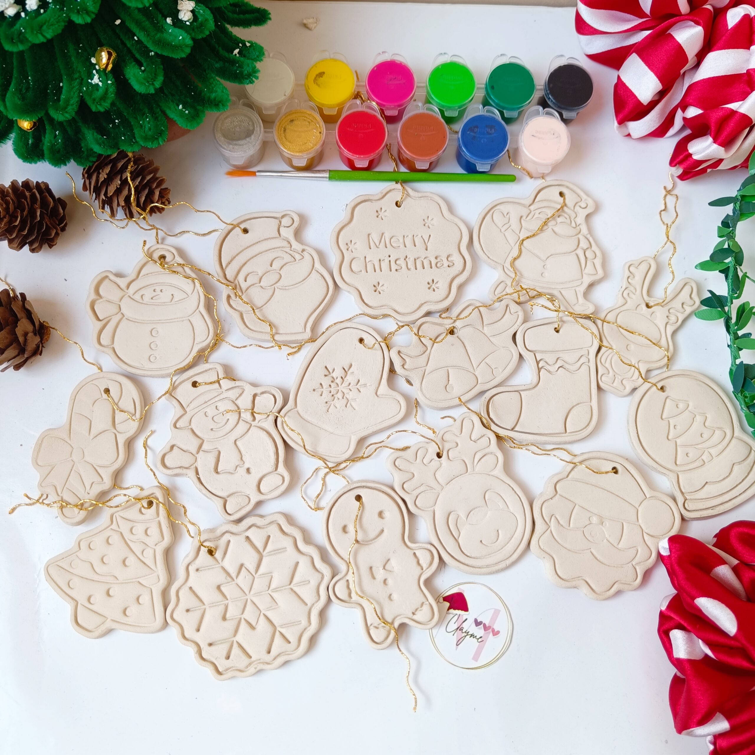 These beautiful Clay ornaments feature adorable Christmas designs like Santa, Snowman, Reindeer, Stocking, Snowflake, Tree, Gingerbread, and more. Simply paint, personalize, and hang them on your tree—or gift them to loved ones for a heartfelt handmade touch.