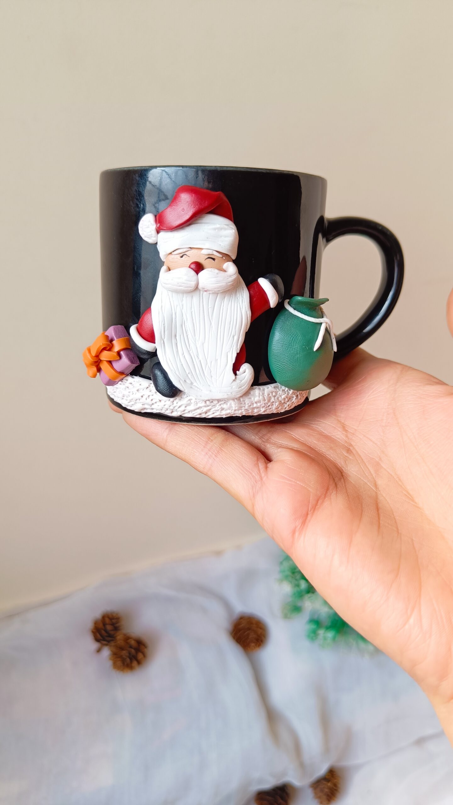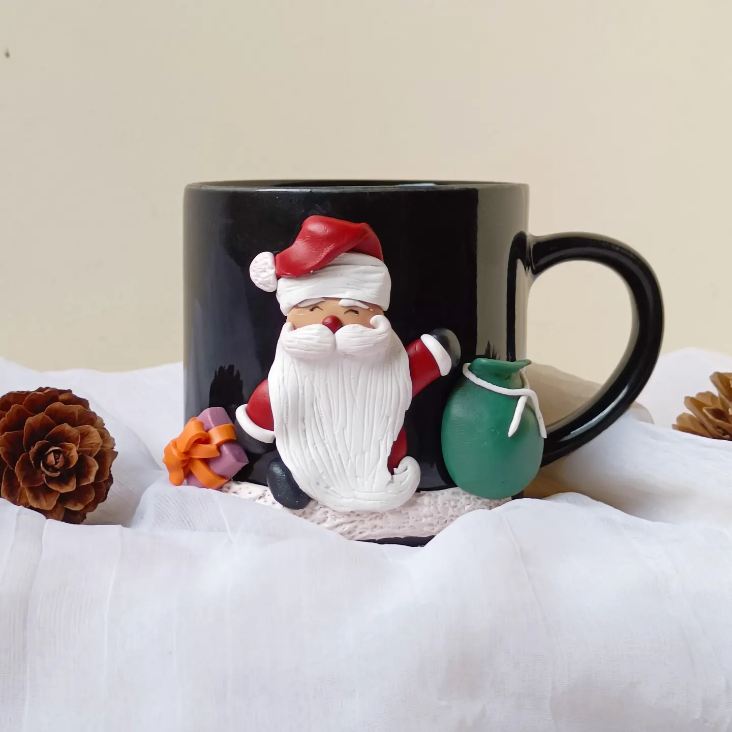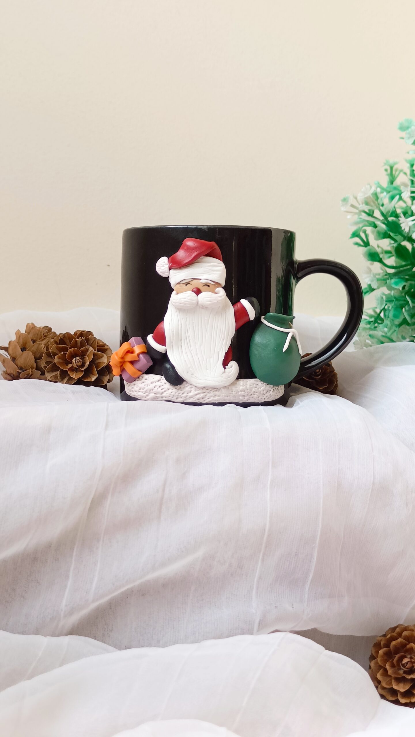 - Premium ceramic mug with handcrafted polymer clay Santa